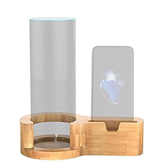 for Echo Stand Holder2 in 1 Bamboo Desktop Speaker Stand Charging Dock Protective Holder for Amazon Echo Speaker and Phon -