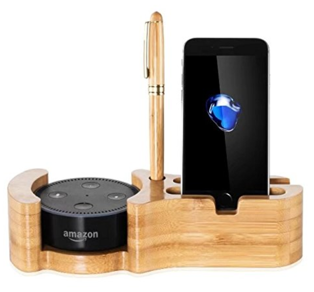 for Echo Dot Holder4 in 1 Bamboo Desktop Stander for amazon Echo & Echo Dot 2nd Generation,Bamboo Holder for iPhone -