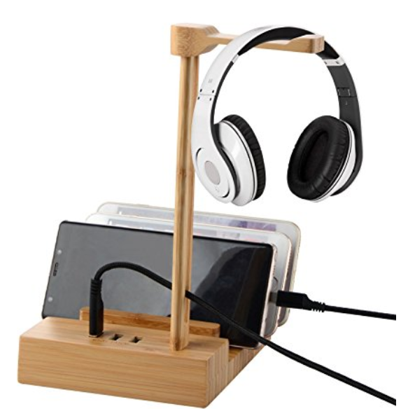 Wooden Headphone StandHeadphone Docking Station Holder for Headphone, Iphone Ipad Samsung and Other Android Devices or Tab -